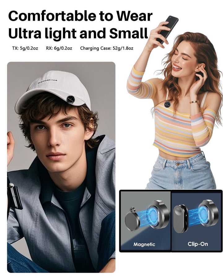 - Plug and Play: No Bluetooth or APP needed. The wireless lavalier microphone can be clipped to the collar for hands-free audio and video recording. Just need to plug the receiver into your device, and power on the microphone, it will start working for you soon.